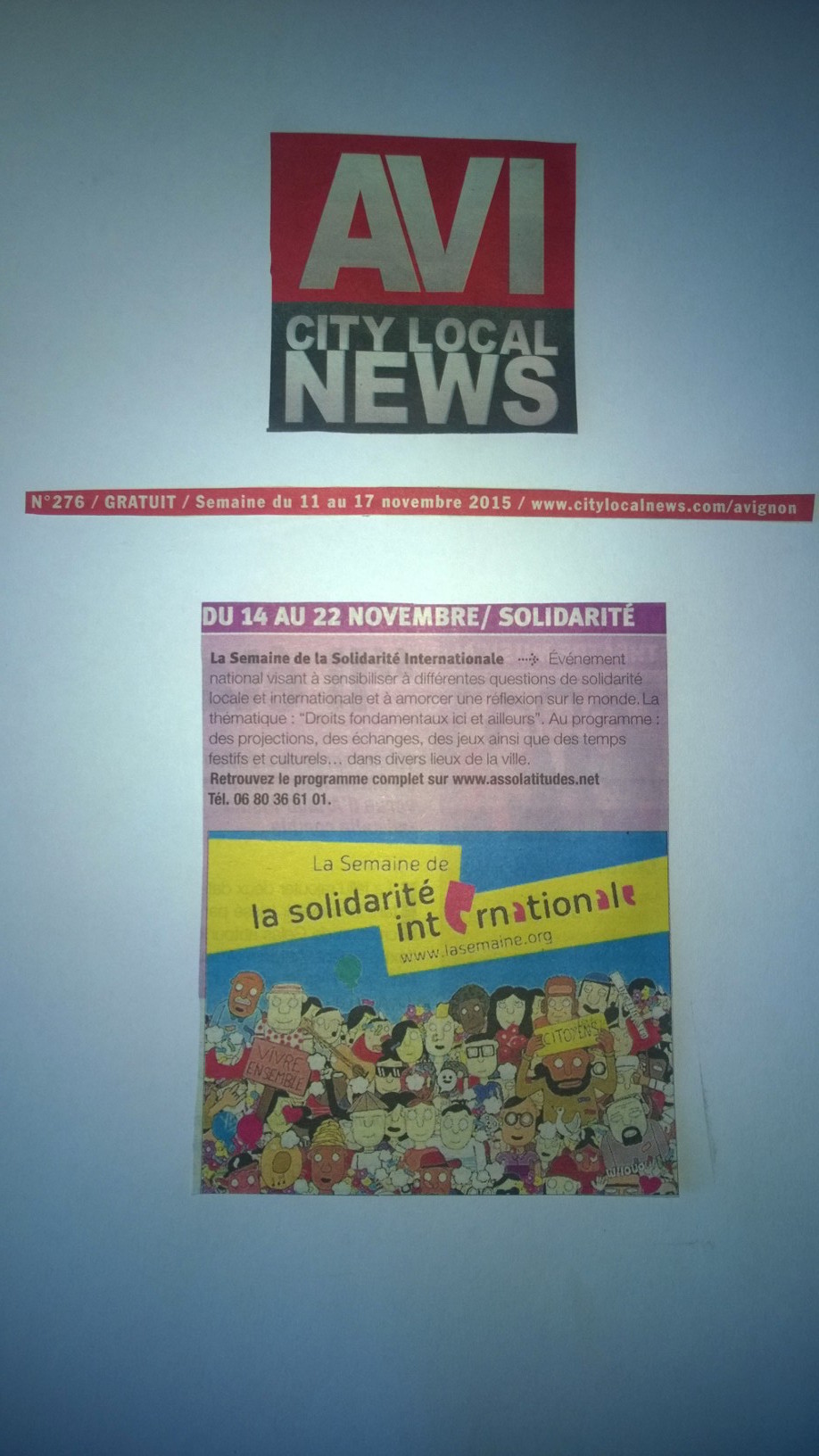 La Semaine de la Solidarité AviNews Pour le début de cette Semaine de la Solidarité Internationale, AviNews nous met dans son Agenda ! Articles similaires