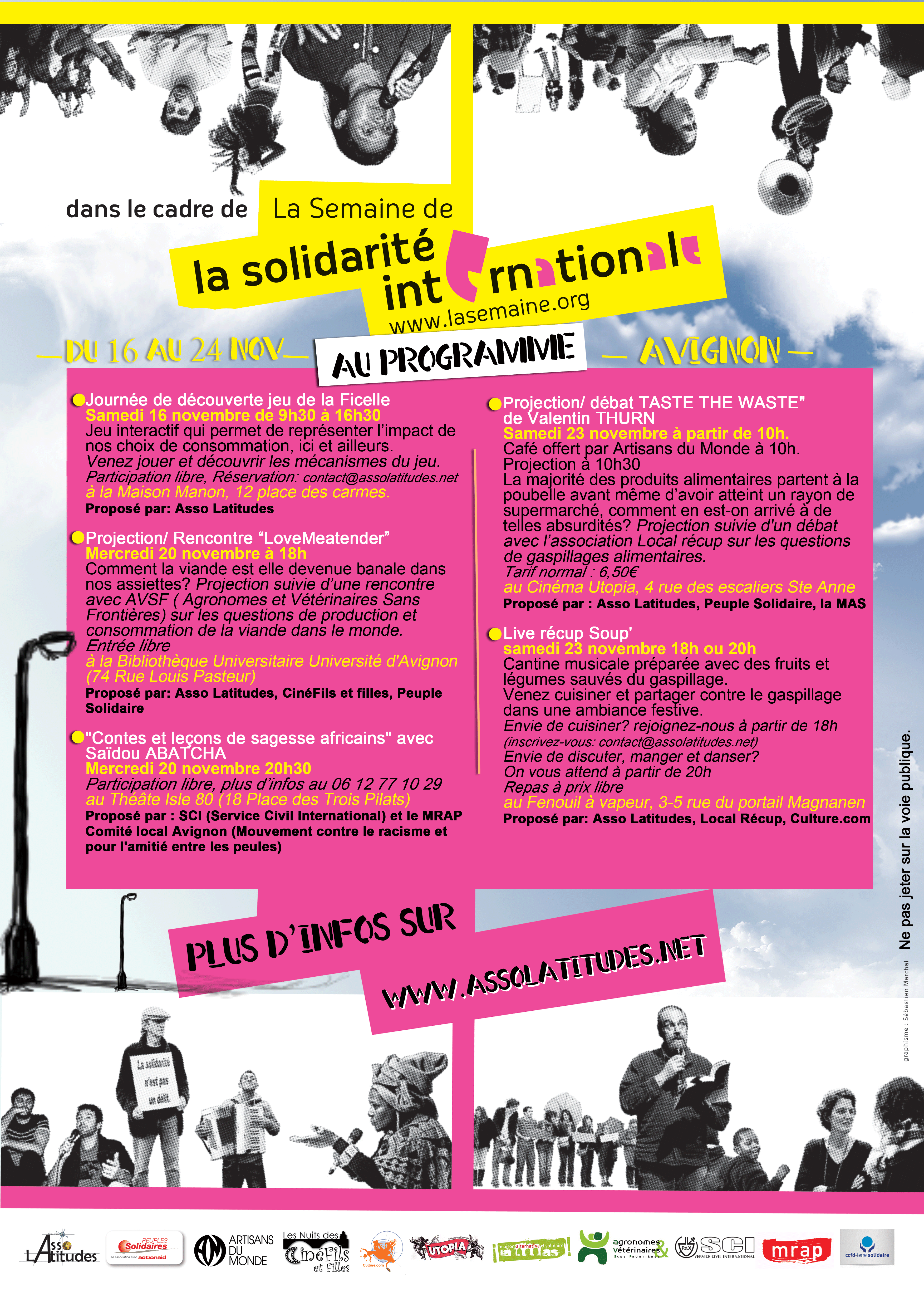 Du 15 au 23 Novembre, Latitudes pilote la Semaine de la Solidarité Internationale à Avignon avec