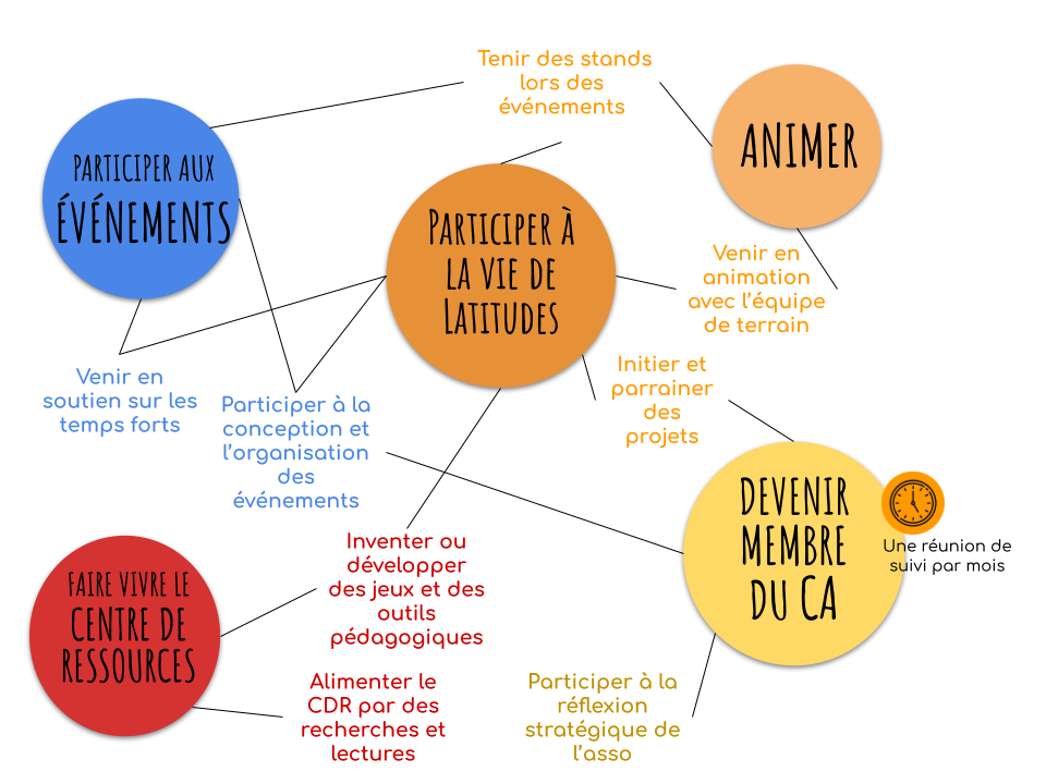Pour vous permettre d’être à l’aise et de nous aider au mieux dans nos missions, nous proposons des temps de formation / découverte d’outils pédagogiques. Ils sont prévus en fonction de nos besoins et des envies des bénévoles, et peuvent prendre la forme de weekends de découverte et transmission, de soirées apéro-jeux, ou de rendez-vous plus personnalisés selon la motivation du.de la bénévole !
